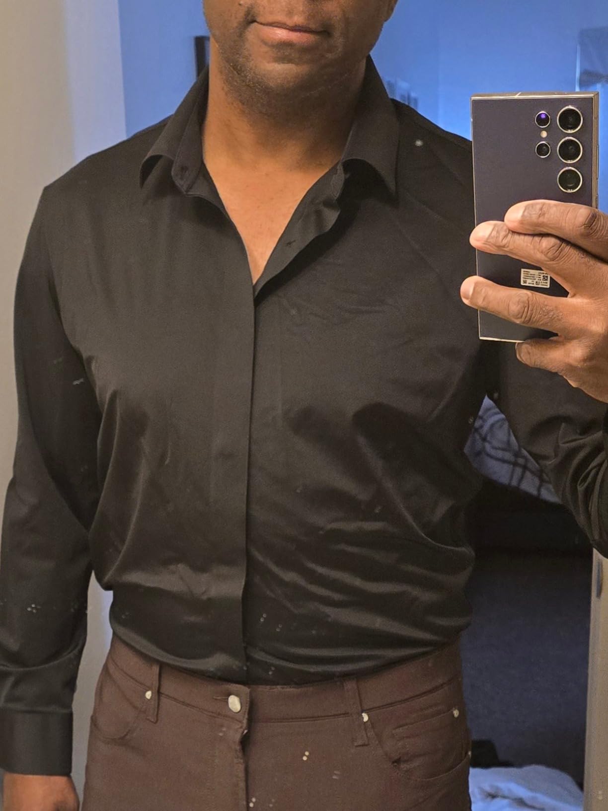 Olvídate de las manchas inesperadas. Nuestra tela repele líquidos de forma inmediata, manteniéndote limpio y presentable todo el día sin esfuerzo.